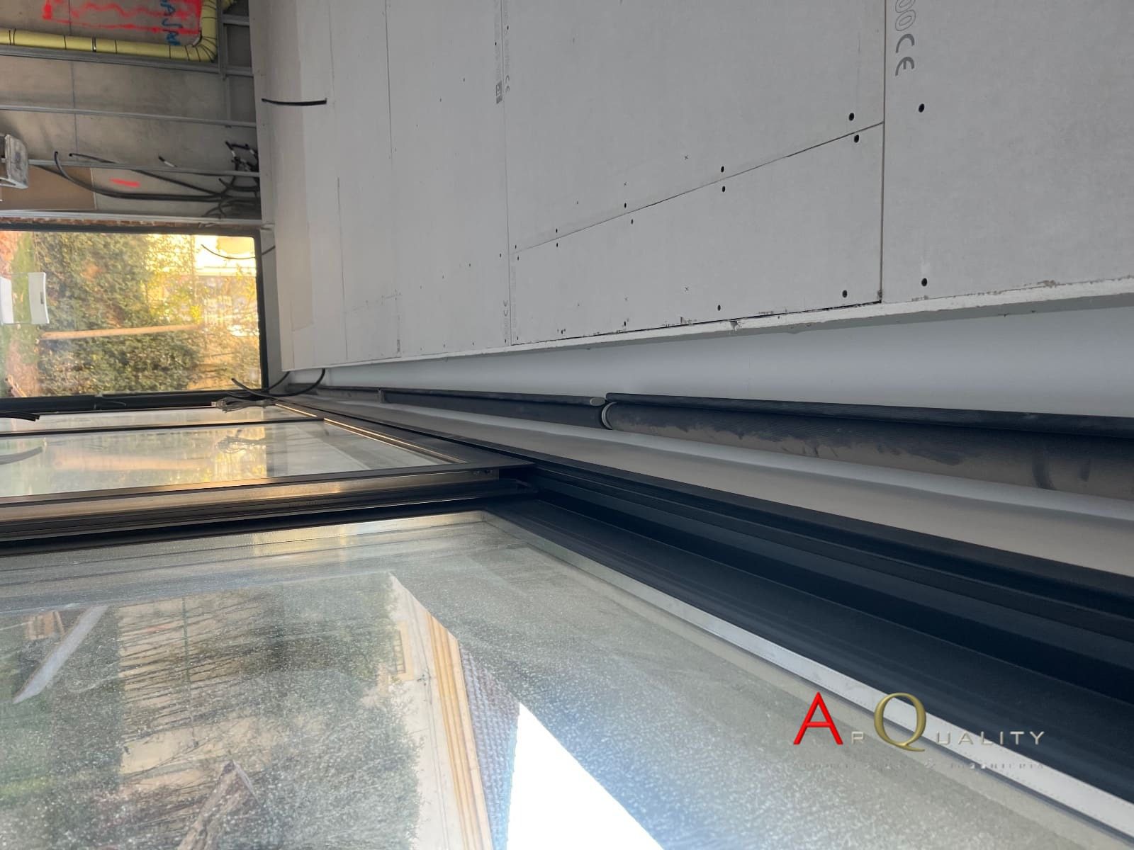 Con el entramado de pladur ya en su sitio, montamos falsos techos donde alojar iluminación técnica empotrada y sistemas de ventilación. Esto permitió un acabado uniforme y minimalista en toda la vivienda. Al mismo tiempo, hemos renovado puertas interiores y carpinterías exteriores, eligiendo modelos de PVC de alta eficiencia y madera lacada en blanco que armonizan con la nueva estética.