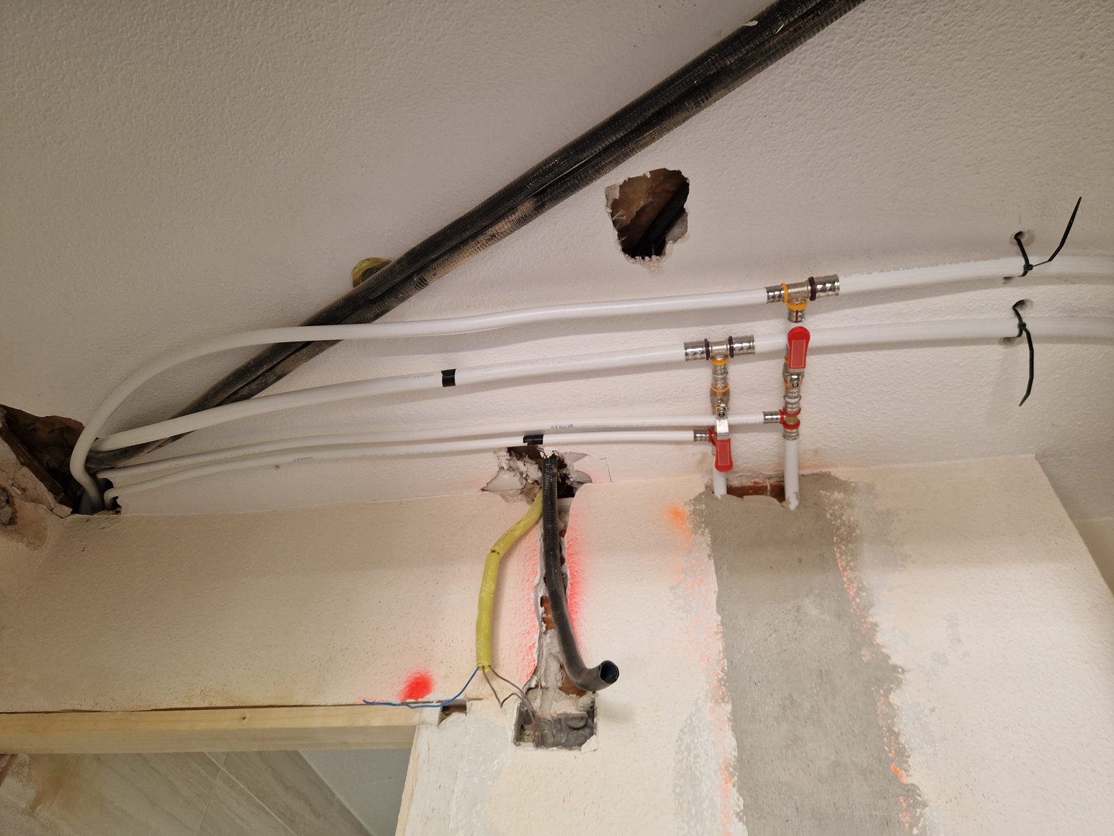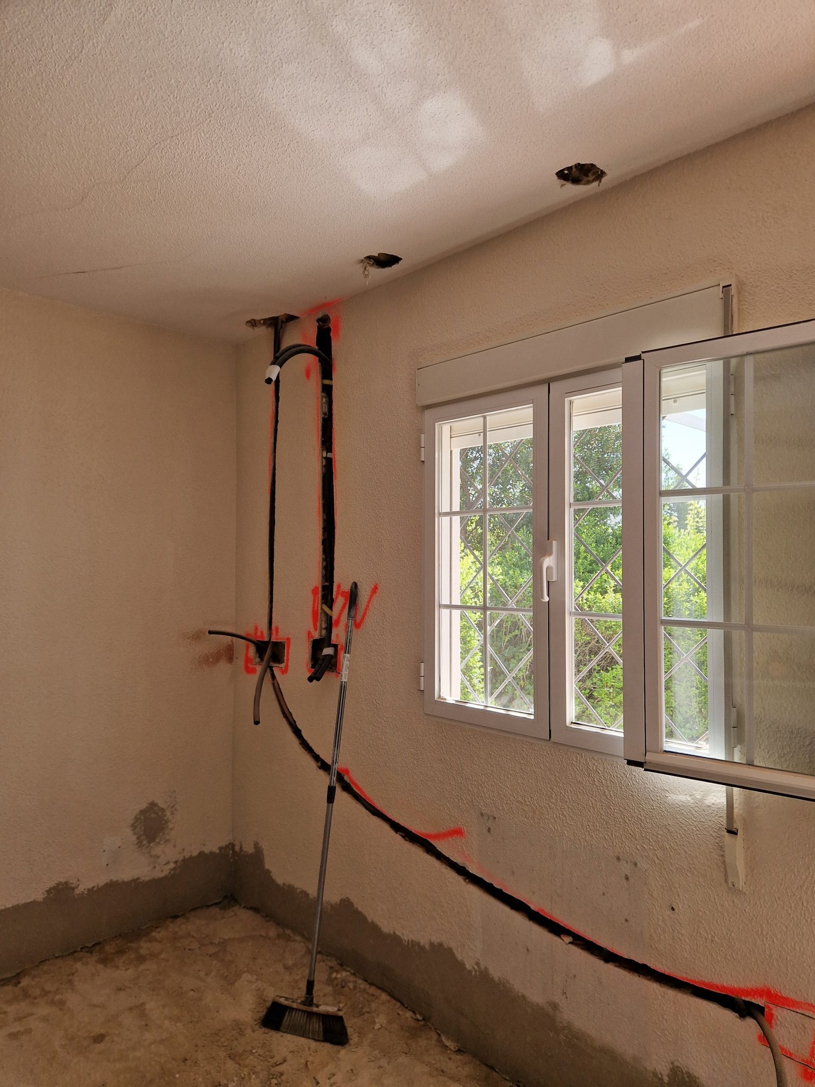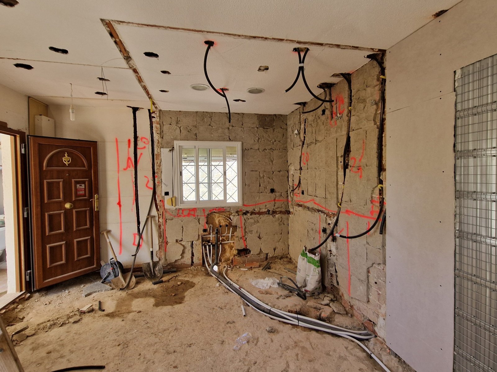 En esta reforma, no dejamos nada a medias. Hemos renovado completamente las instalaciones de fontanería y electricidad. Ya hemos instalado el sistema de suelo radiante, con colectores bien distribuidos y preparado para ofrecer confort térmico uniforme. En paralelo, trazamos una nueva red eléctrica, preparada para iluminación LED, enchufes modernos y opciones de domótica. Todo pensado para que el día a día sea más cómodo, seguro y eficiente.