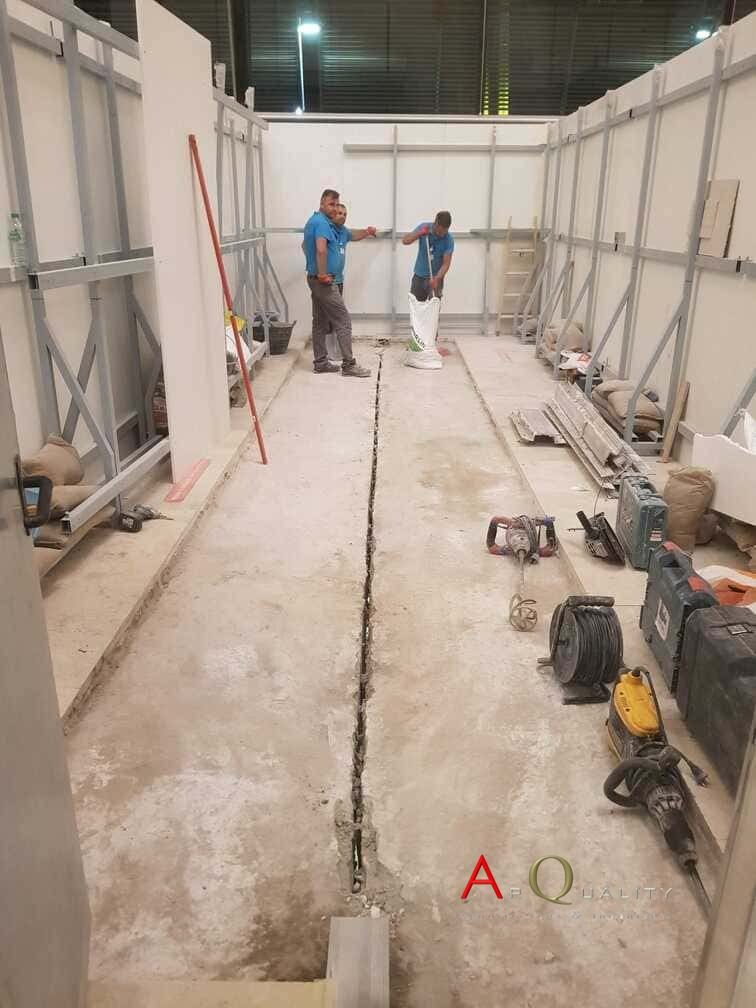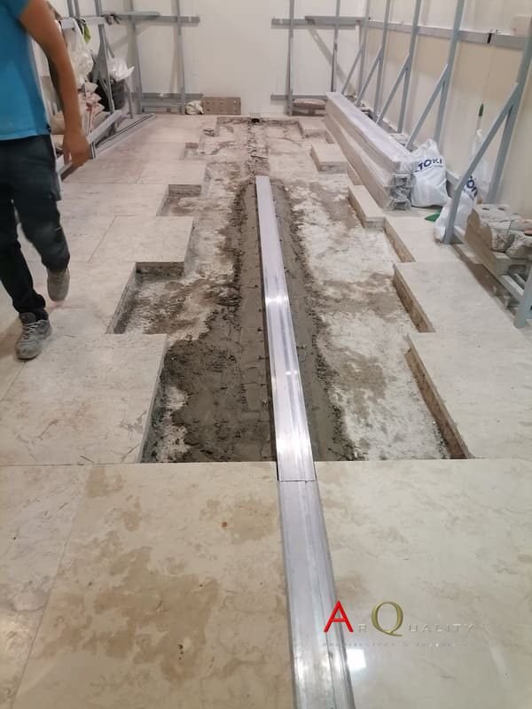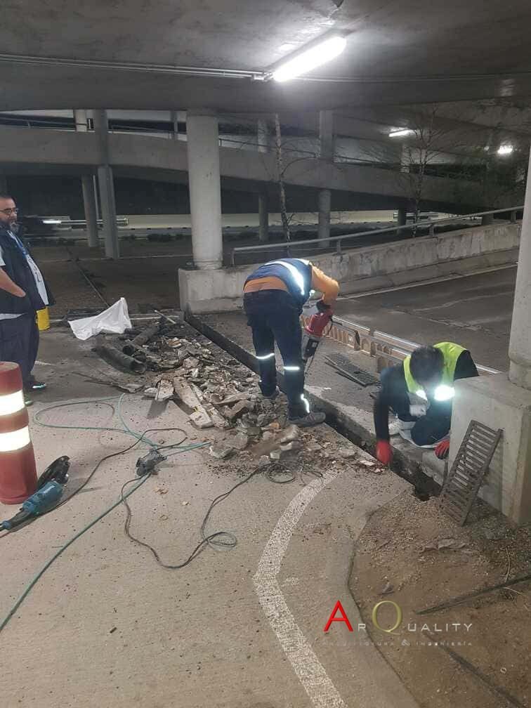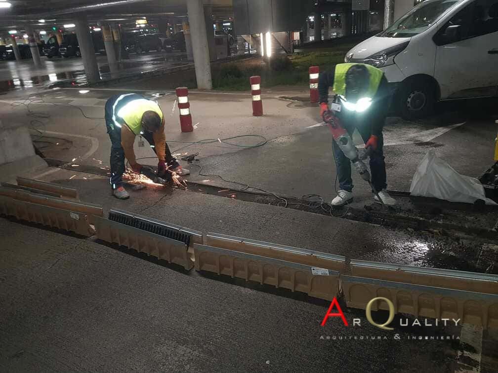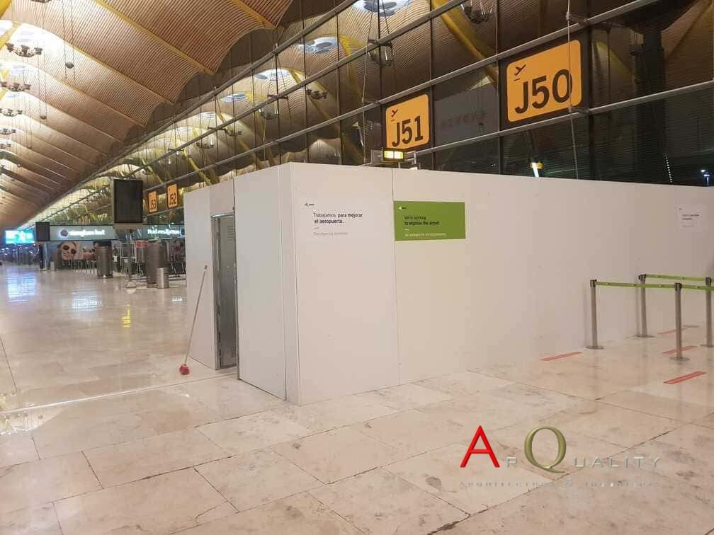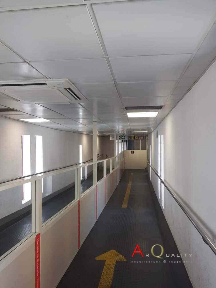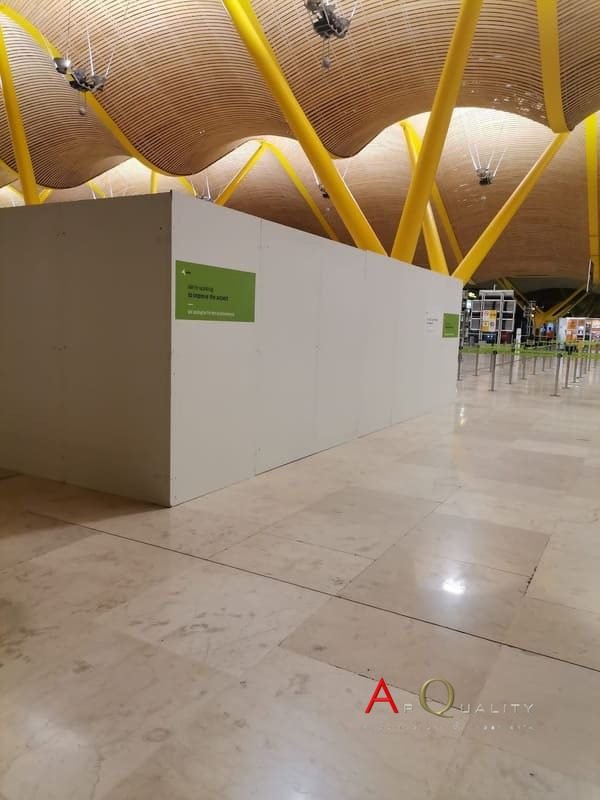 En Arquality asumimos en 2022 un proyecto de gran envergadura en la Terminal T4 del Aeropuerto de Barajas, con un presupuesto global de 3 millones de euros. Nuestra intervención incluyó la instalación de una junta longitudinal especial a lo largo de 1,5 km de pasillos, la reforma completa de los baños, mantenimiento de cubiertas, renovación de rejillas de ventilación, actualización de la red de fontanería y trabajos de cerrajería.