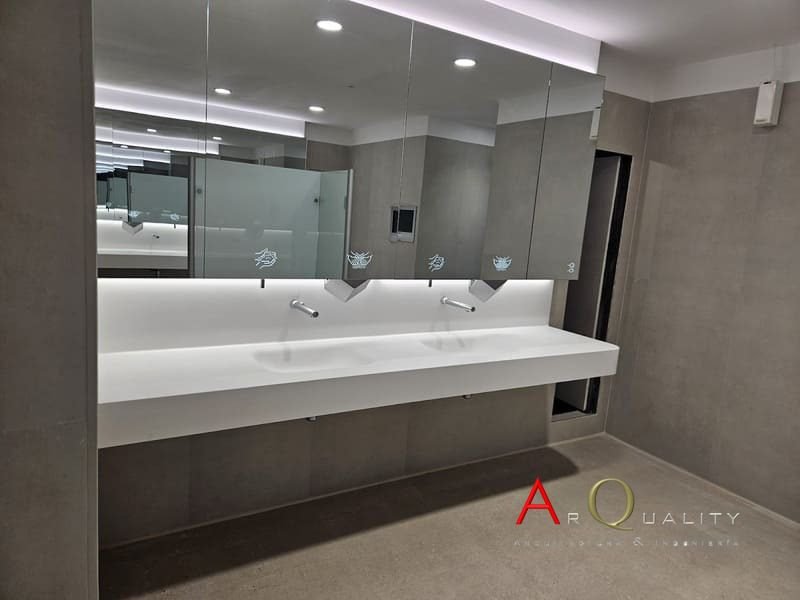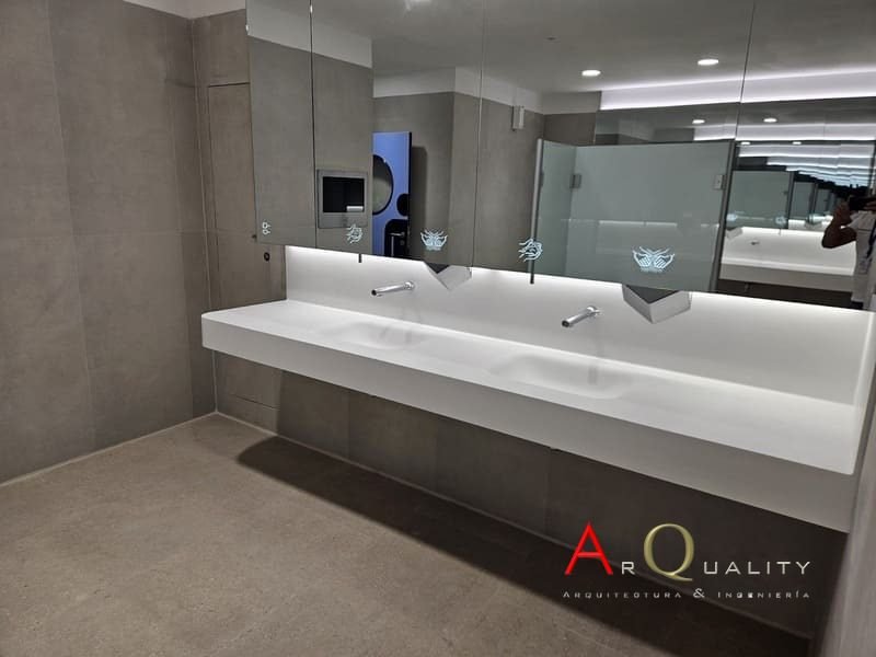 Actualizamos la distribución de agua fría y caliente con tuberías multicapa de alta resistencia, dimensionadas para soportar el caudal simultáneo de miles de usuarios. Desde el colector principal se trazaron ramales a cada local de aseos, con válvulas de corte y desagües modernos antiolores, asegurando estanqueidad y facilidad de acceso para futuros mantenimientos.