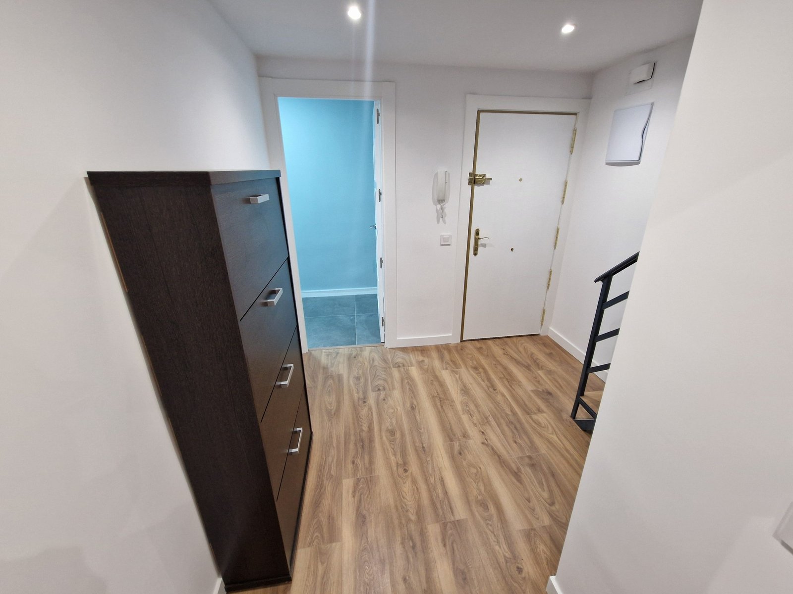 La fontanería se renovó por completo, instalando grifería termostática Grohe Rainshower. La electricidad se adaptó al RBT, con puntos de luz LED empotrados y tomas USB integradas en mecanismos Simon 27, uniendo funcionalidad y diseño.