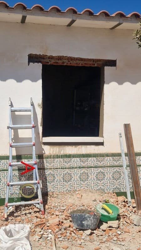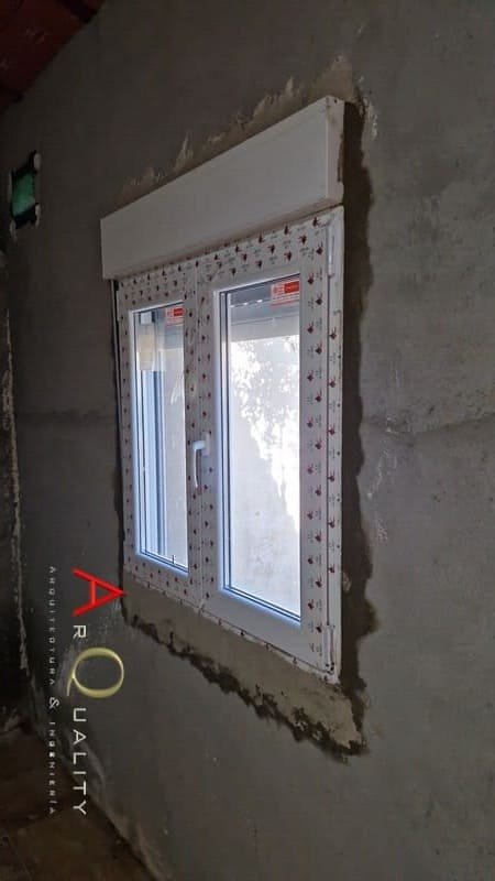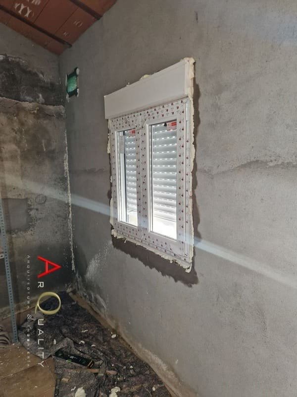Para aportar mayor luz natural y ventilación cruzada, localizamos la zona de salón y realizamos la apertura de dos huecos en la fachada exterior. Tras demoler la zona de enfoscado y cerámica, colocamos dinteles de acero galvanizado laminado en caliente, asegurando la resistencia estructural. Inmediatamente después montamos premarcos de aluminio con rotura de puente térmico, preparados para recibir las ventanas de PVC y doble acristalamiento que optimizarán el aislamiento térmico y acústico.