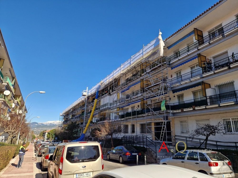 La obra corresponde a la rehabilitación integral de un bloque de viviendas ubicado en la calle Samil de Collado Villalba, dentro de la Comunidad de Madrid. Este proyecto se encuentra actualmente en ejecución y contempla dos actuaciones principales: la rehabilitación completa del tejado del edificio y la renovación integral del revestimiento de fachada.